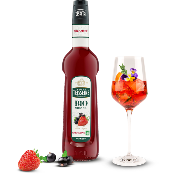The name 'grenadine' derives from the French word grenade, which means pomegranate. A non-alcoholic syrup with a characteristic deep red hue, it is traditionally prepared from a mixture of pomegranate juice, sugar and water. It is a popular cocktail ingredient valued for its tart and sweet flavour as well as the brilliant tint it gives mixed drinks.